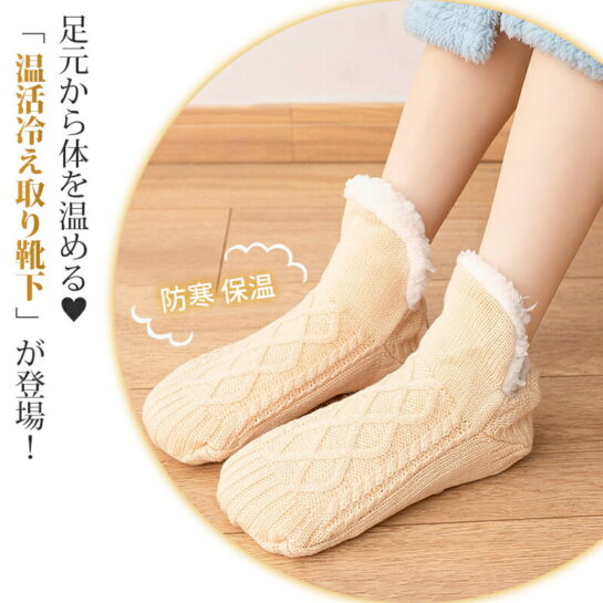 【50%OFF】超厚手裏起毛ルームソックスで冷え知...