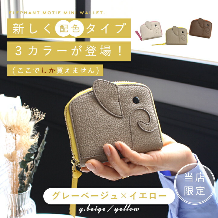 当店限定カラー「グレーベージュ×イエロー」:黄色いゾウさんで金運アップ!?